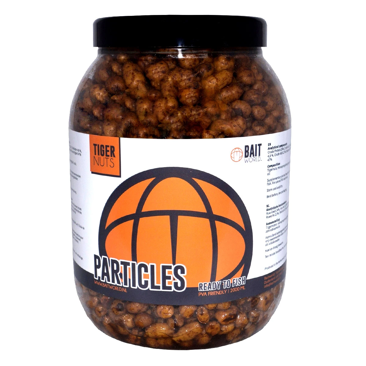 Een aassoort die zeker niet meer weg te denken is uit de karper visserij, zijn tijgernoten! Tijgernoten bevatten circa 25% vet, 30% zetmeel en 7% eiwit. Het vet bestaat voor een groot deel uit onverzadigde vetzuren, zoals oliezuur en linolzuur. Tot slot zitten tijgernoten vol mineralen. Deze houdbare tijgernoten zijn verpakt in een stevige herbruikbare pot en bestaan uit verschillende diameters door elkaar. Deze houdbare partikels zijn speciaal ontwikkeld voor het gebruik op lange termijn, dit is mogelijk door het toevoegen van boterzuren, citroenzuren en overige amino’s waardoor de partikels worden gestabilisserd. Het stabiliseren van partikels zorgt voor een langere productkwaliteit van minimaal 9-12 maanden.