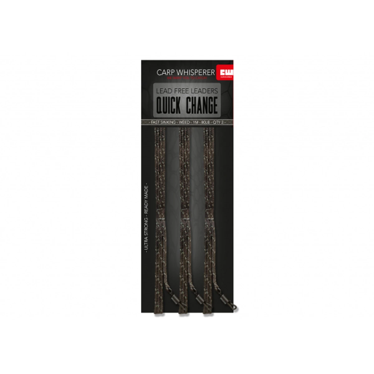 Quick Change Leaders kunnen gebruikt worden voor zowel inline als ook lead clip systemen. Voor inline loodsystemen raden wij aan om eerst een CW Tail Rubber op de leader te schuiven en vervolgens een inline lood. Op deze manier kun jezelf eenvoudig een no escape inline loodsysteem maken.