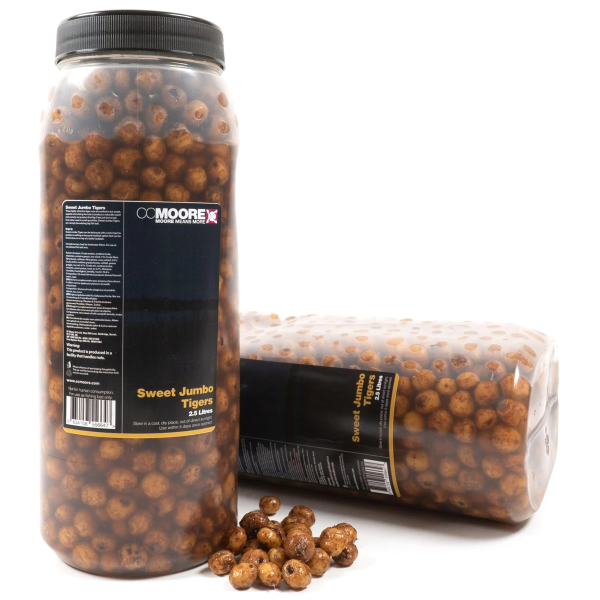 De CC Moore Sweet Jumbo Tigers behoren tot 1 van de beste partikels op de markt. Deze tijgernoten zijn vers bereid en direct klaar voor gebruik. CC Moore heeft ervoor gekozen om een zoetstof toe te voegen waardoor de tijgernoten nog zoeter zijn dan normaal. Het verhoogt de instant respons van dit aas.