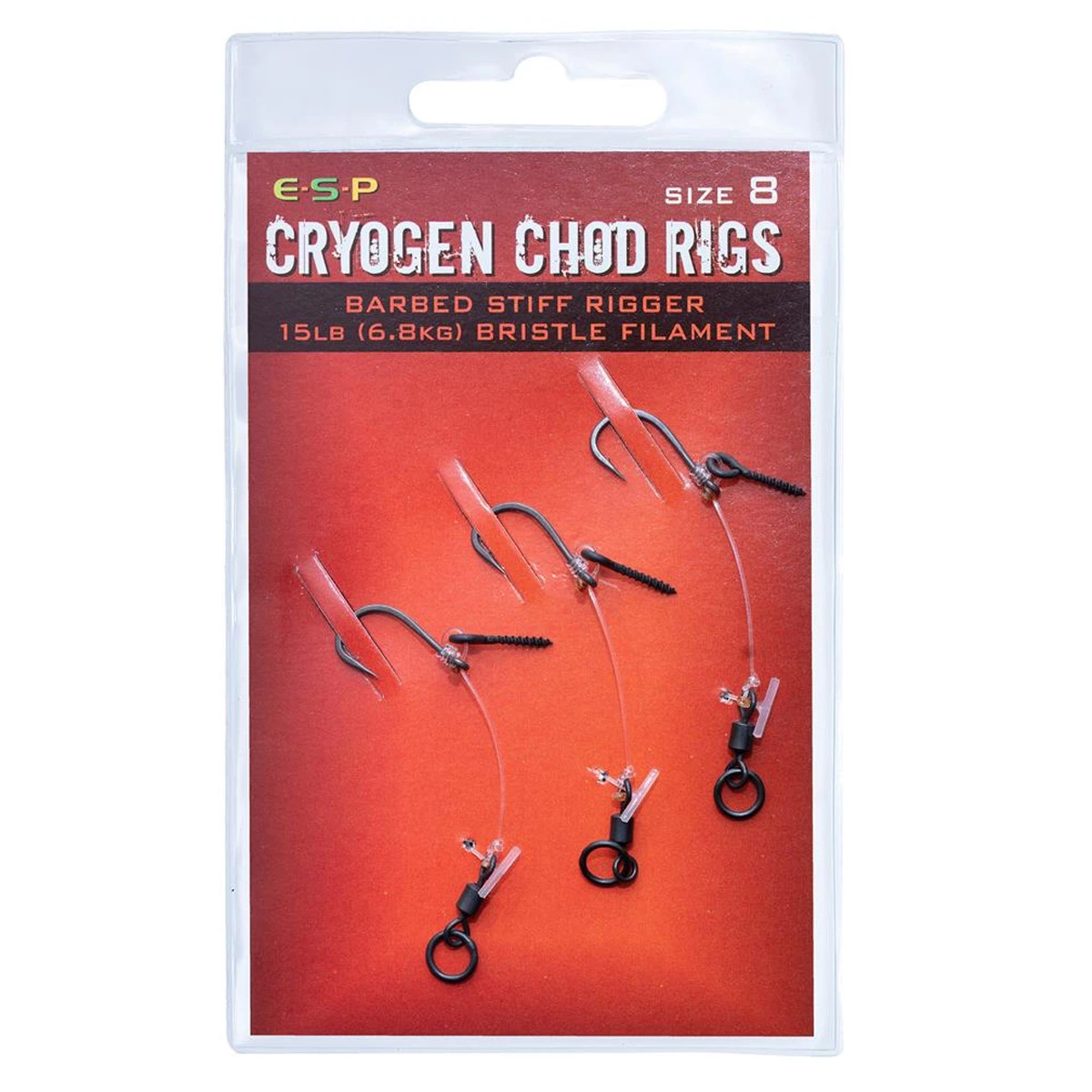 Deze chod-rigs zijn voorzien van Cryogen Stiff Rigger’s die ongelooflijk sterk zijn met superscherpe, duurzame punten. De onderlijnen beschikken over een soepel draaiende Uni-Link-wartel en een metalen aasschroef voor een gemakkelijke, veilige bevestiging van elk type pop-up.