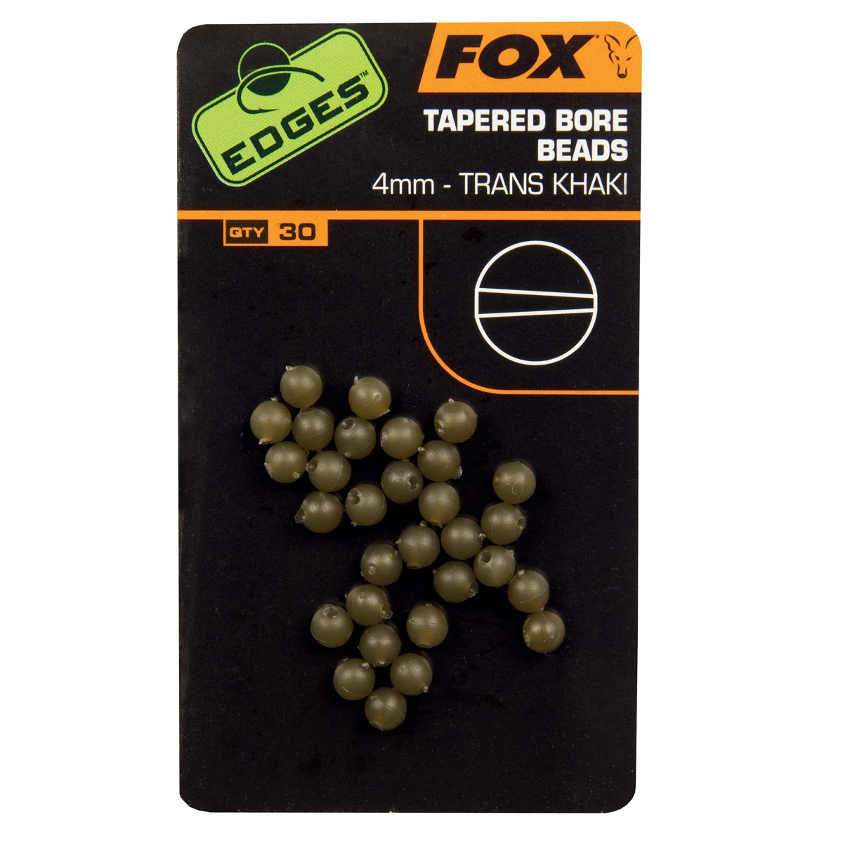 TAPERED BORE BEADS 4mm Ontworpen voor gebruik direct op leadcore en Submerge leaders. Ideaal voor positioneren van chods en helicopter setups. TAPERED BORE BEADS 6mm Deze schokabsorberende beads hebben een getaperd gat om netjes over wartels te passen, en kunnen voor diverse montages worden gebruikt.