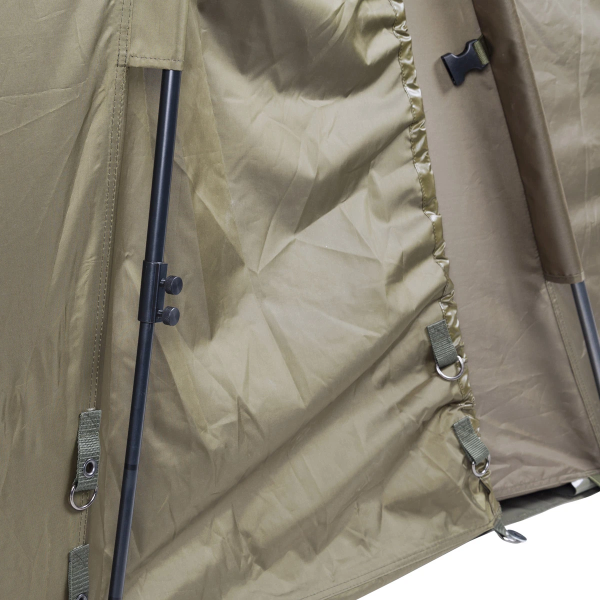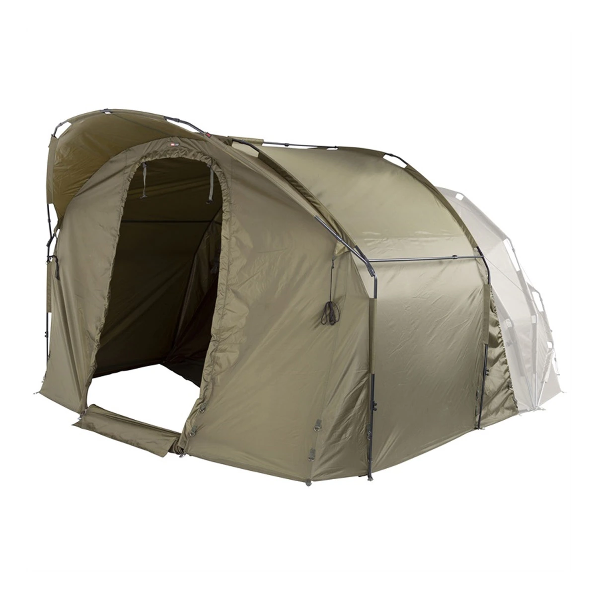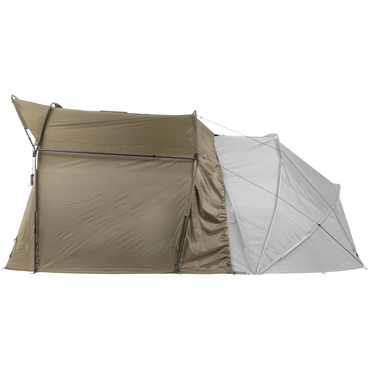 Dit unieke luifelsysteem kan passend worden gemaakt voor elke maat bivvy en biedt een grote leef- en kookruimte die perfect is voor langere sessies. Dankzij het slimme ontwerp kan de hoogte van de luifel worden aangepast aan een compacte 1-persoons bivvy of een extra grote Continental Dome. Het biedt voldoende zitruimte voor meerdere personen en is zeer geschikt om extra gasten te kunnen laten slapen. Het is ook ideaal voor gebruik als kookruimte. Bij slecht weer kunt u in de luifel uw natte kleding en laarzen uitdoen. Er is namelijk voldoende ruimte om rechtop te staan, zodat u kunt voorkomen dat de slaapruimte nat en vies wordt.