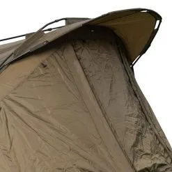 De Defender Bivvy heeft een ruimtebesparend design. Bovendien is hij uitgerust met een luifel en ventilatieopeningen met muskietengaas aan zowel de voor- als de achterkant. Het doek is gemaakt van 5.000mm HH210D PU-gecoat polyester en heeft afgeplakte naden. Hij biedt dus een hele goede bescherming tegen het natte, Nederlandse weer. Dankzij het verstevigde frame is deze bivvy gemakkelijk op te zetten en staat hij als een huis. Een tent boordevol handige oplossingen voor de karpervisser voor een prijs waar je niet omheen kunt.