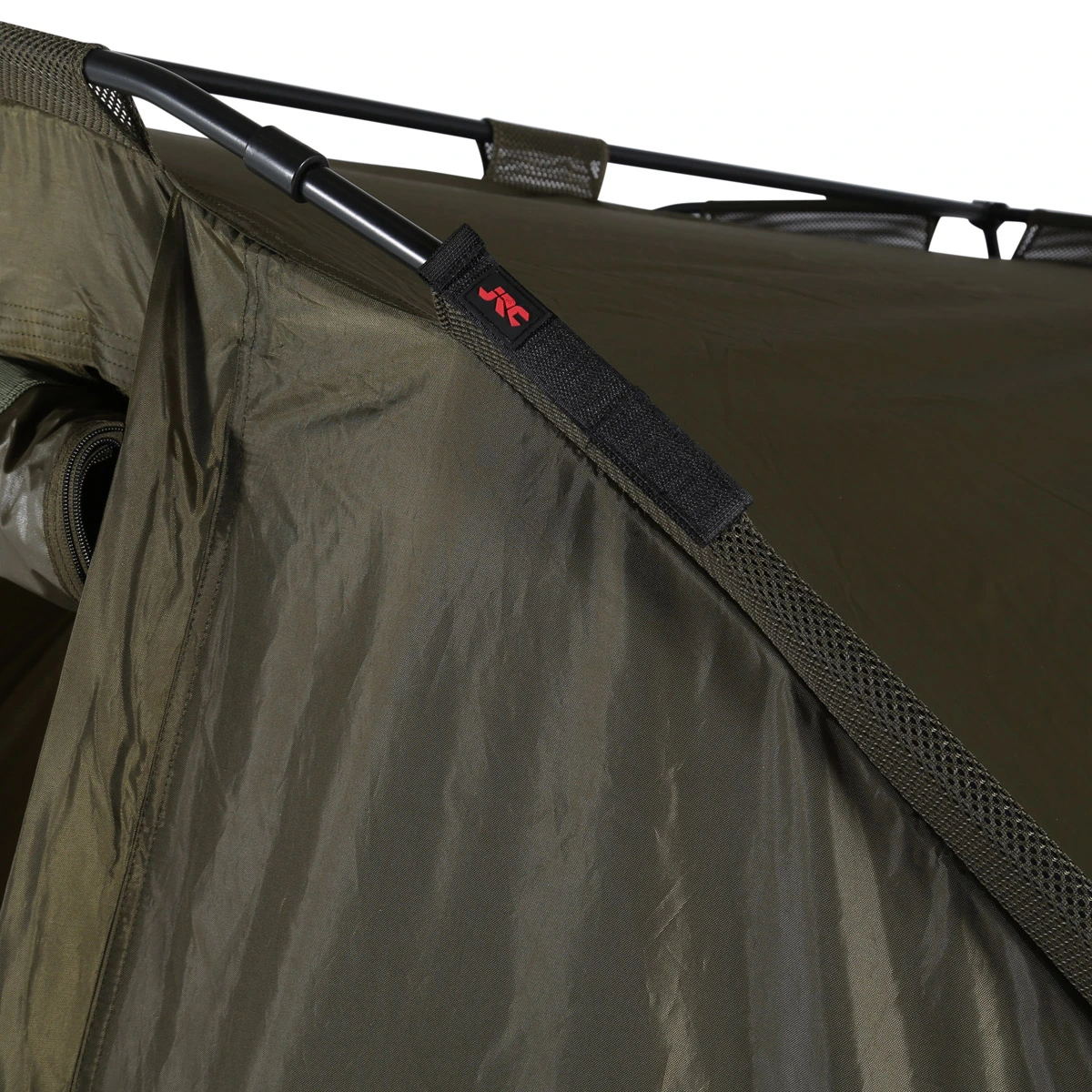 De JRC Defender Bivvy serie vervangt de oude Contact-serie en wordt waarschijnlijk net zo invloedrijk of misschien nog wel meer, dankzij de vernieuwde ruimtebesparende vorm, gemoderniseerde kenmerken en de gebruikelijke hoogwaardige materialen, stokken en ritsen in deze zeer betaalbare prijsklasse.