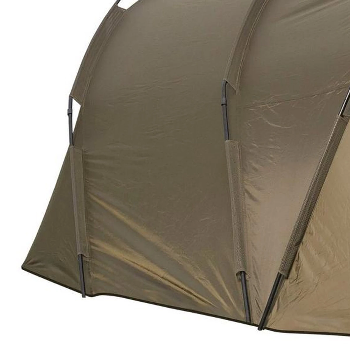Deze versie maakt gebruik van het nieuwe ruimtebesparende bivvy-ontwerp van de Defender XL en heeft een luifel en ventilatieopeningen van mozzi-gaas aan de voor- en achterkant. De Defender Peak Bivvy XL zit boordevol functies die door de moderne karpervisser worden gevraagd en zal de marktleidende bivvy worden voor deze zeer betaalbare prijs. Deze XL-versie biedt plaats aan 2 stretchers en alle spullen die nodig zijn voor een lange comfortabele sessie op de oever!
