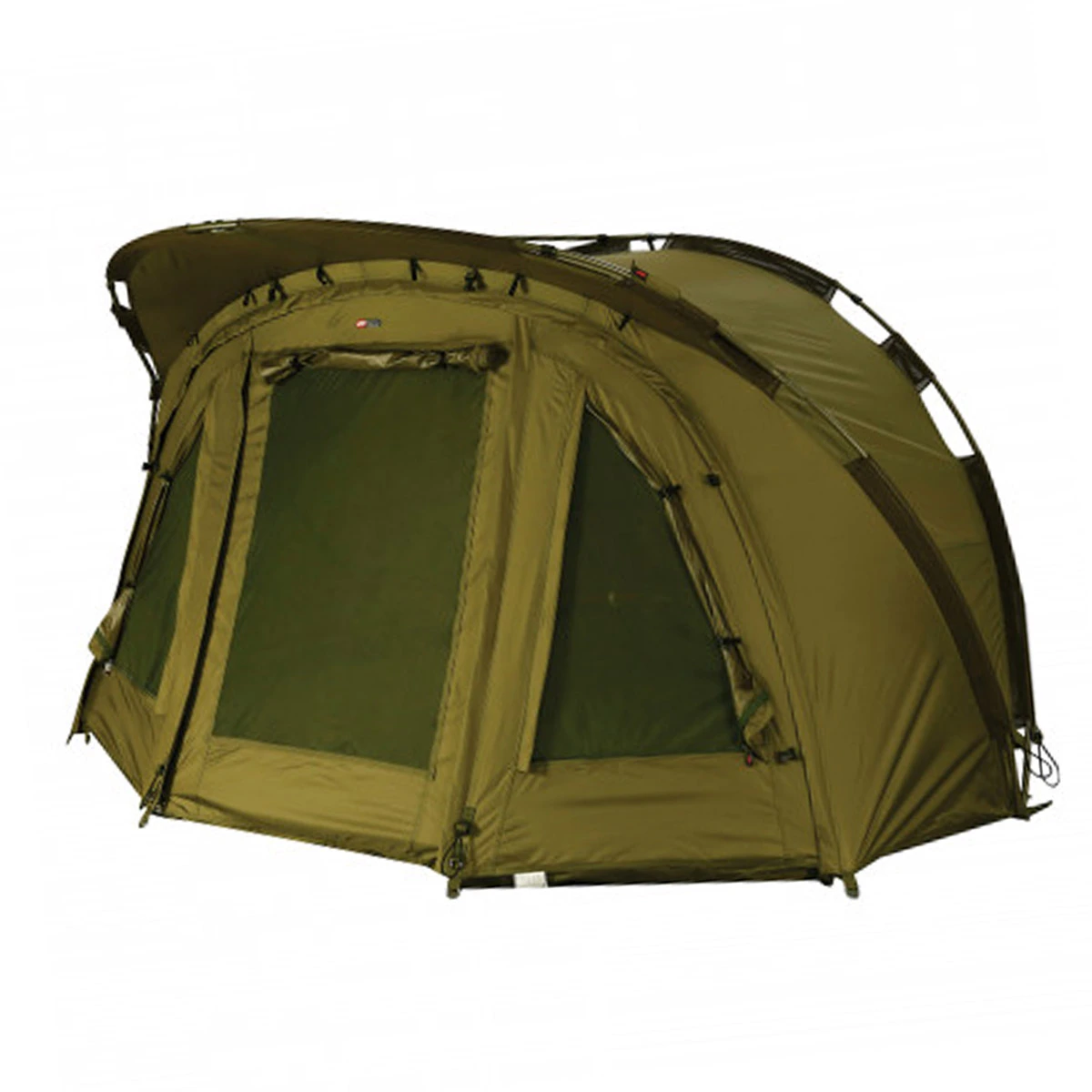 Doordat je deze bivvy met én zonder luifel kunt opzetten, ben je dus in staat om de opzet- en afbreektijd van je bivvy te verkorten. Zo kun je eerst snel zonder luifel de stek proberen en ben je zo mobiel mogelijk om je kampement te verplaatsen. Of je zorgt eerst dat je binnen 3 minuten je bivvy hebt staan en gaat vervolgens als je hengels uit liggen werken aan het comfort. Ontworpen dus als compacte en snel op te zetten bivvy, echter ontbreekt het je met deze bivvy niet aan de nodige extra’s. Uiteraard is deze bivvy waterdicht (Hydratex 10.000HH met gesealde naden) en voorzien van duurzaam PVC grondzeil, opbergvakken binnenin, grote ventilatiegaten met gaas en een uitschuifbare luifel. De afritsbare voorkant heeft een tweezijdige ingang met 3 lagen: Transparant, groen en muggengaas.De twee stevige ribben zijn gemaakt van 6001 lichtgewicht aluminium.