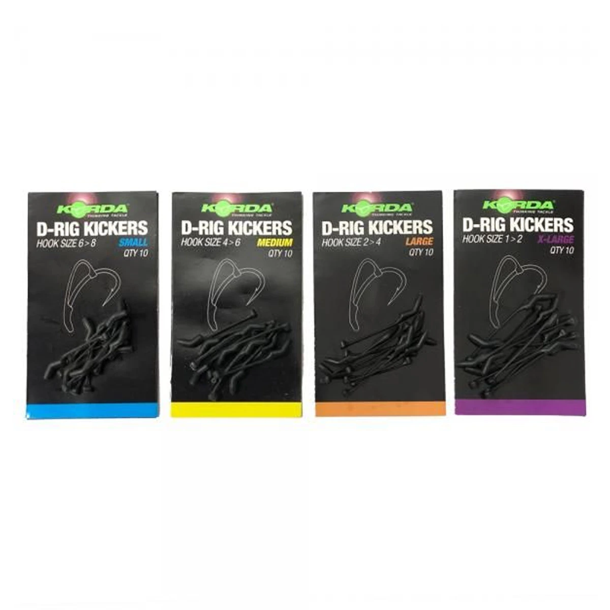 De Korda D-Rig Kickers maken het zeer eenvoudig om een perfecte D-rig te maken. Schuif de Kicker over de haak en de ‘D’ is gemaakt. Daarnaast zorgt de Kicker ervoor dat het draaivermogen van de haak enorm wordt vergroot. De Korda D-Rig Kickers zijn verkrijgbaar in verschillende maten.