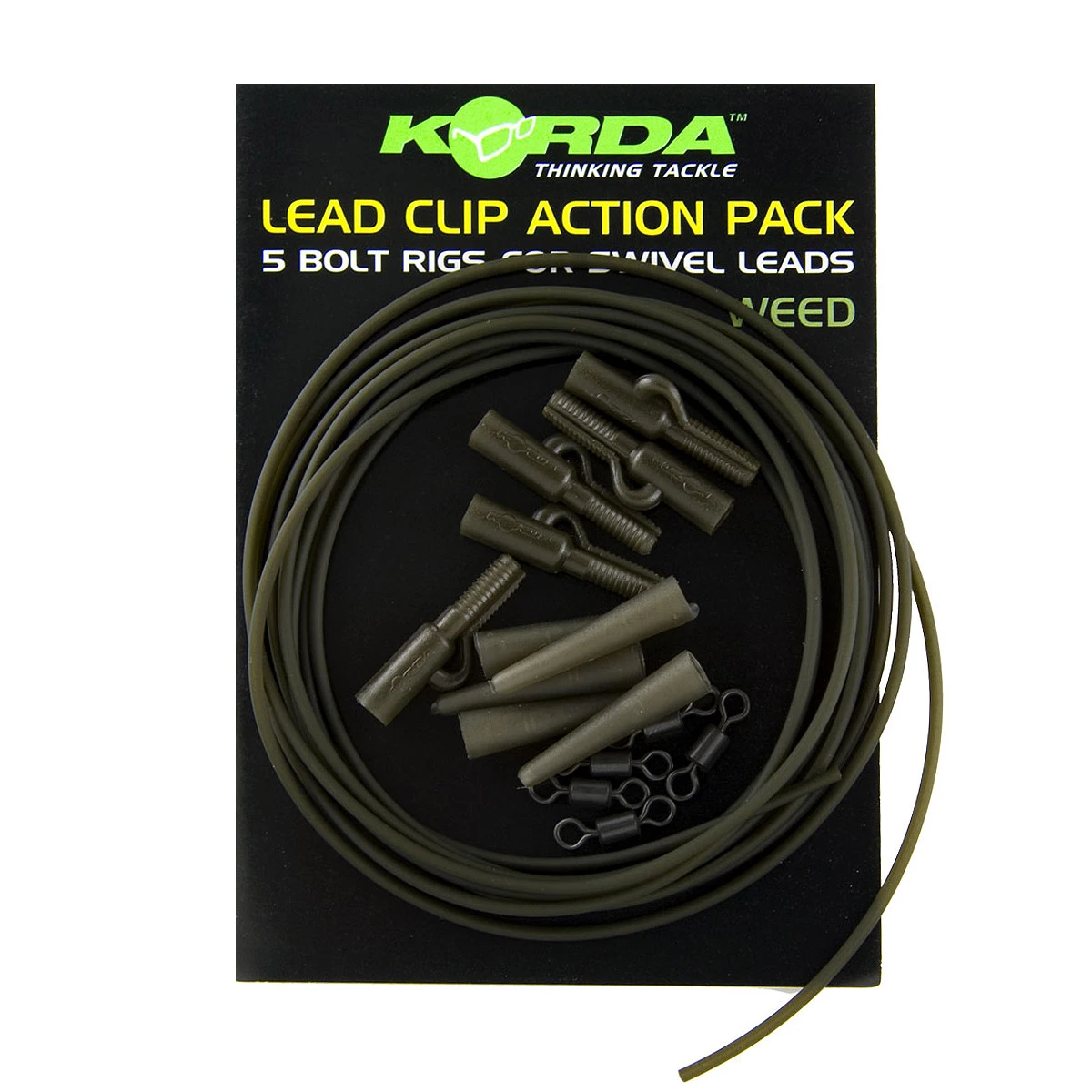 Door het gebruik van het lead clip systeem van Korda zorg je er voor dat de vis veilig geland wordt. Wanneer je een keer vast komt te zitten zal het lood altijd eerder los komen dan de wartel. In het Action Pack zit materiaal om 5 loodsystemen klaar te maken.