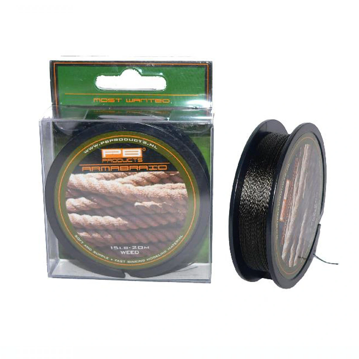 Armabraid is een zeer soepele, perfect ronde en zinkende gevlochten lijn, die probleemloos de contouren van uiteenlopende bodemstructuren kan volgen. Dit knoop vaste onderlijnmateriaal komt onder water natuurlijk over en plooit makkelijk rondde bek van de karper waardoor een goede aasopname gegarandeerd wordt. Armabraid kan met vrijwel elk haaktype worden gecombineerd en is uitermate geschikt als je bijvoorbeeld een zeer korte onderlijn wilt gebruiken. Als je met dit materiaal moet werpen, adviseren wij om een PVA wokkel op de haakpunt te prikken om eventueel in de war raken van de onderlijn te voorkomen. Verkrijgbaar op spoelen van 20 meter en in 25 lb