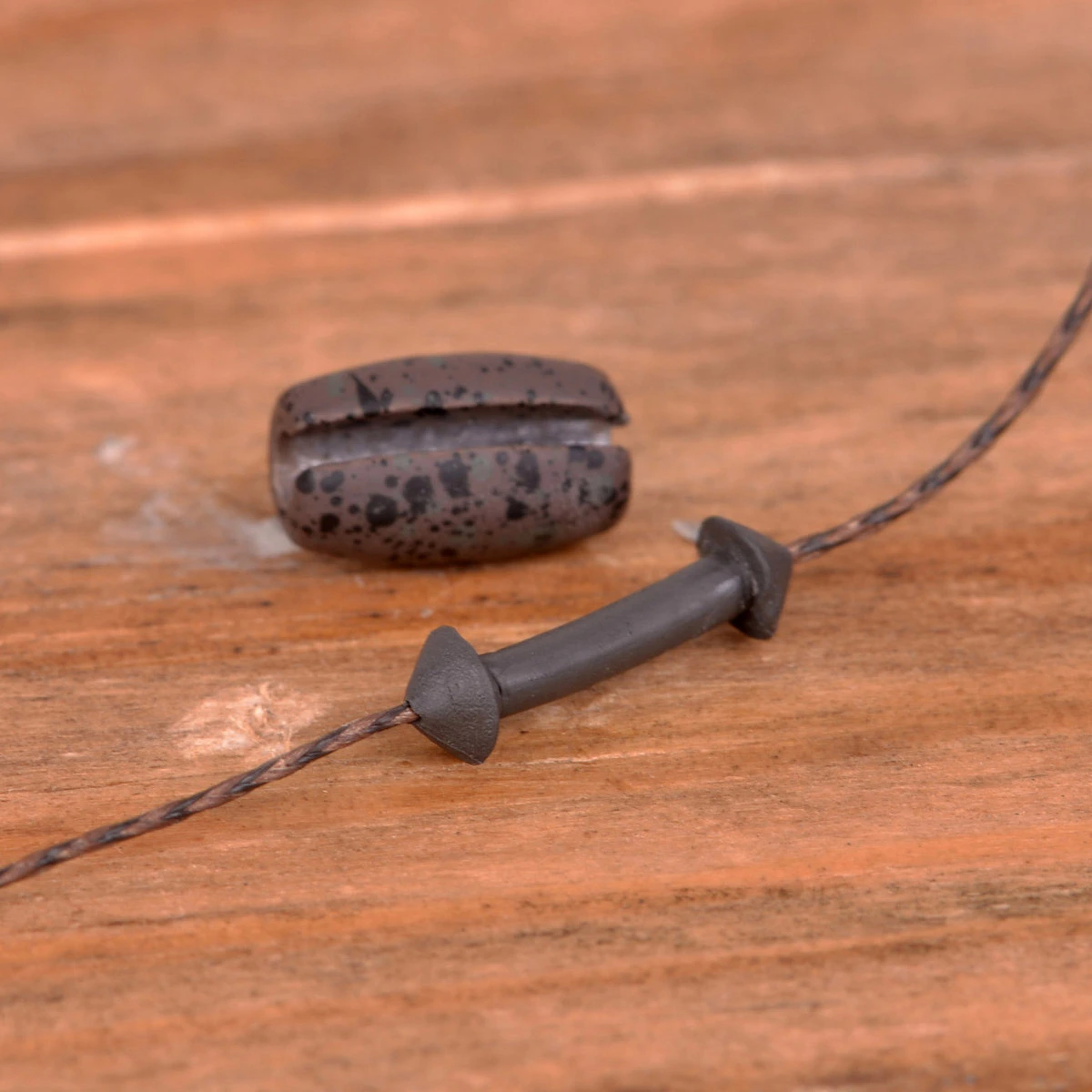 Een eenvoudig op de onderlijn te schuiven tungsten bar waarop het loodgewichtje van de QC Heavy Sinker op simpele wijze aangebracht kan worden.