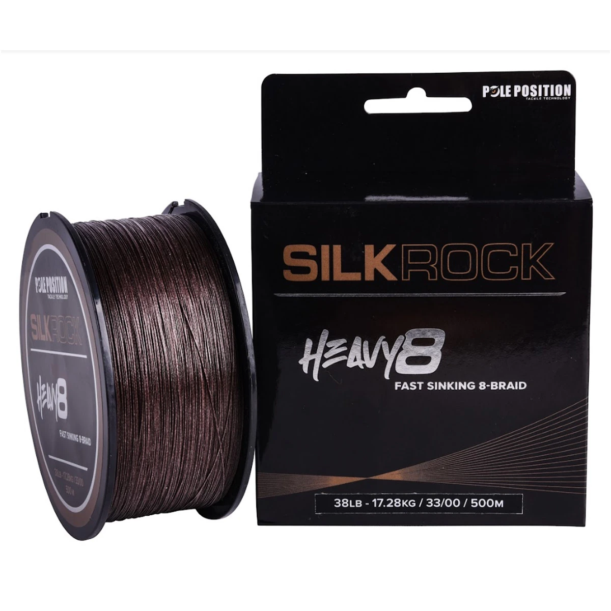 De Silkrock Heavy8 gevlochten hoofdlijn is een uitermate zachte, dicht geweven, kleurvaste 8-braid die geweldig werpt en snel zinkt. De ideale lijn voor de allround afstandsvisserij en goed te combineren met onze mono/fluoro carbon voorslagen. Uitgevoerd in een donker bruine kleur die goed wegvalt tegen vrijwel elk bodemtype.