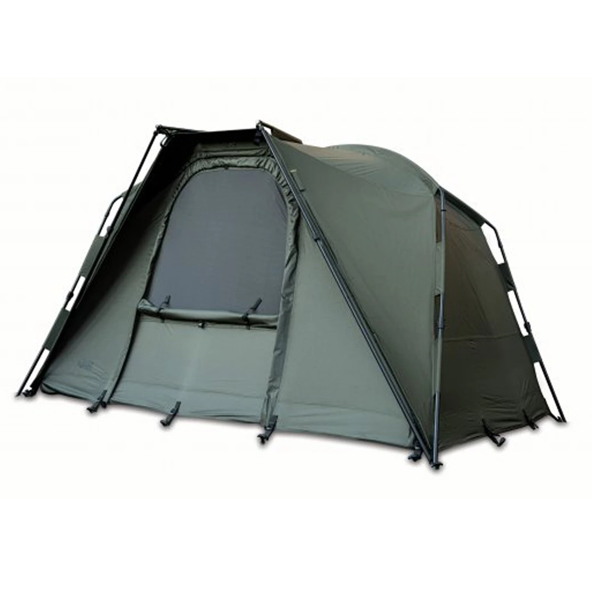 De nieuwe generatie Spider Bivvy is compacter, lichter in gewicht, ultra stabiel en universeel in gebruik met een zeer vriendelijke prijs. Ontwikkeld met een Cam-Loc frame systeem, waarbij iedere poot van het frame afzonderlijk in hoogte te stellen is, zodat de bivvy op alle ondergronden perfect en op de juiste spanning neer te zetten is. Zeer snel op te zetten, biedt de SP Compact Spider met z’n rechthoekige design maximale interne ruimte. De tent is voorzien van een interne condensatie scherm. Een Industry First Feature in de vorm van de nieuwe Mag-Loc gespen om de zijkanten en Permavent aan de achterkant op te rollen. Deze Mag-Loc buckles zijn ook terug te vinden op de los verkrijgbare Infill Panel. Tevens zijn de Heavy Duty, inritsbare grondzeil en Full Mozzi-Mesh Panel met Mac-Loc door los verkrijgbaar. De SP Compact Spider Shelter Bivvy is dus ontworpen als een modulair system, wat je naar wens kunt ombouwen tot een mooi full system waar iedere visser jaloers op zal zijn. Stormpalen en haringen meegeleverd.