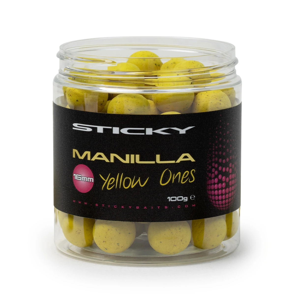 De Sticky Baits Manilla Yellow Ones Pop-Ups zijn qua samenstelling en ingrediënten identiek aan de gelijknamige boilies, hierdoor zijn ze perfect te gebruiken i.c.m. met alle andere producten uit de Manilla Range. Dankzij de opvallende gele kleur zullen deze pop-ups snel door aanwezige karpers worden opgemerkt. Daarnaast hebben de Sticky Baits Manilla Pop-Ups een hoog drijfvermogen en zijn ze perfect uit te balanceren.